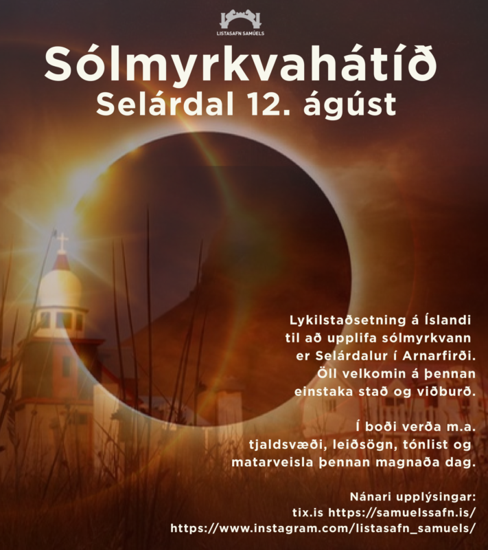 Þann 12. ágúst 2026 verður sannkölluð himnesk upplifun þegar Selárdalur í Arnarfirði breytist í einn besta stað landsins til að upplifa stórbrotinn sólmyrkva. Þetta er einstakt tækifæri til að verða vitni að sjaldgæfum náttúruviðburði – í umhverfi þar sem list, náttúra og kyrrð mætast. Lykilstaðsetning á Íslandi Selárdalur er talinn einn af allra bestu stöðunum […]